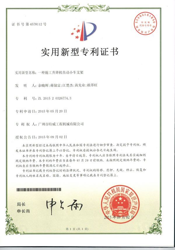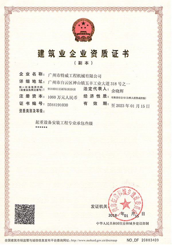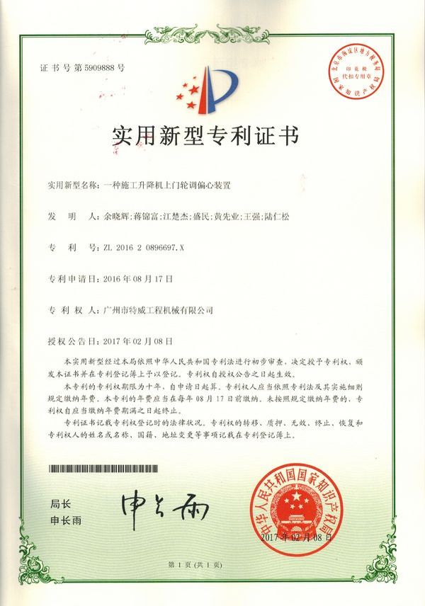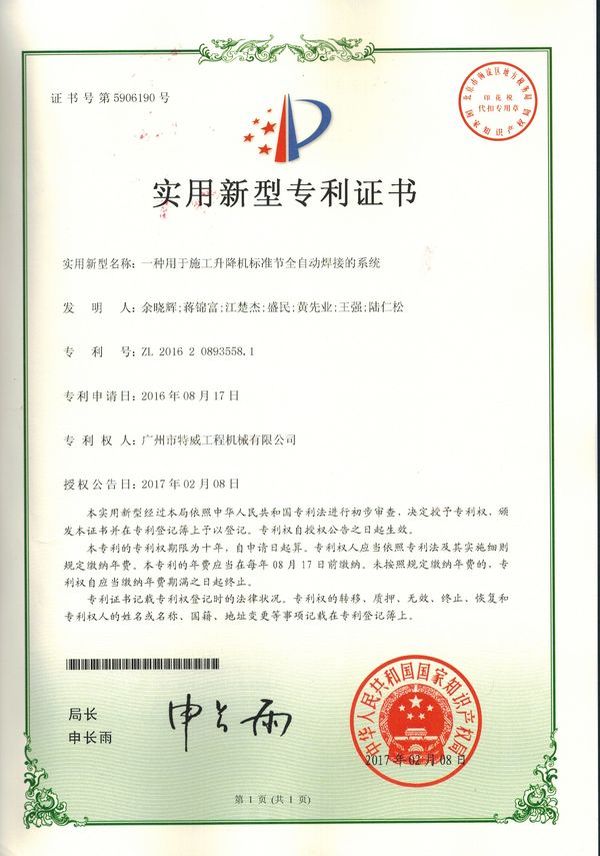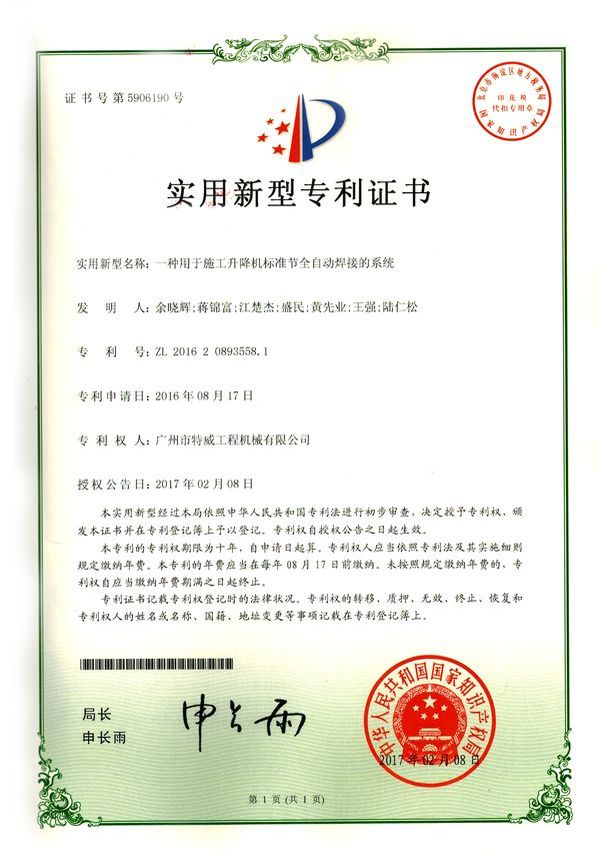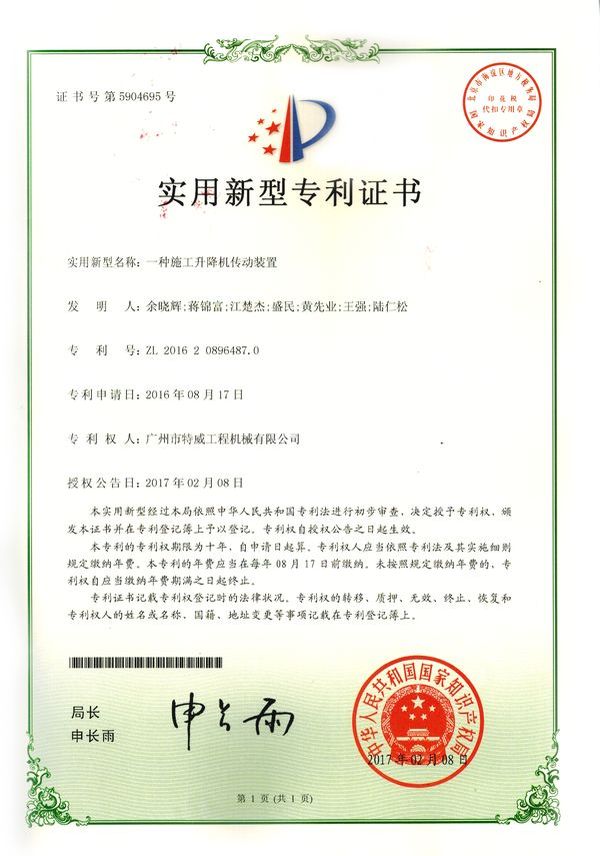 廣州市特威工程機(jī)械有限公司地處廣州市白云區(qū)神山鎮(zhèn),廣清高速神山出口附近,是一家施工升降機(jī)的專業(yè)生產(chǎn)廠家。公司成立于2011年,占地100000多平方米,注冊資金1060萬元,現(xiàn)有員工300余人其中工程技術(shù)人員33人,高級(jí)技術(shù)人員52人。